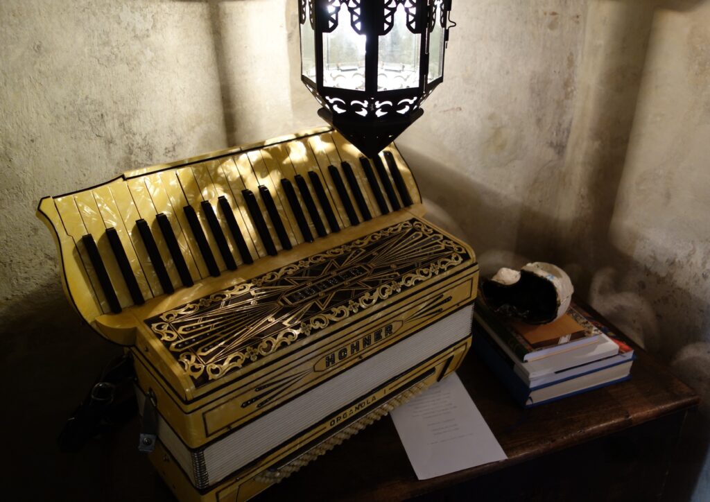 Saadaval on kõik vajalik, mis akordionimängu jaoks oluline : alates õlarihmadest ning pillikastidest kuni mikrofonideni.